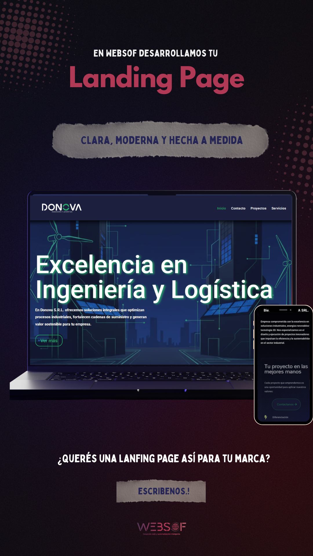 Así luce una web profesional diseñada para Donova SRL, especializada en ingeniería y logística: Presentación clara de servicios, Diseño sobrio y confiable y Funcionalidad optimizada